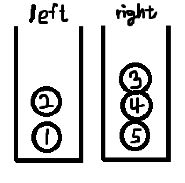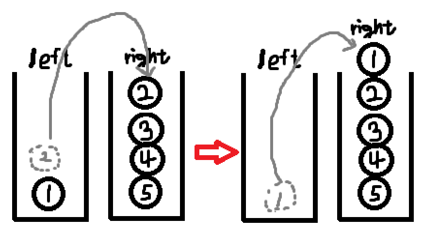 왼쪽스택에 있던 값을 빼면서 오른쪽스택에 넣는다.