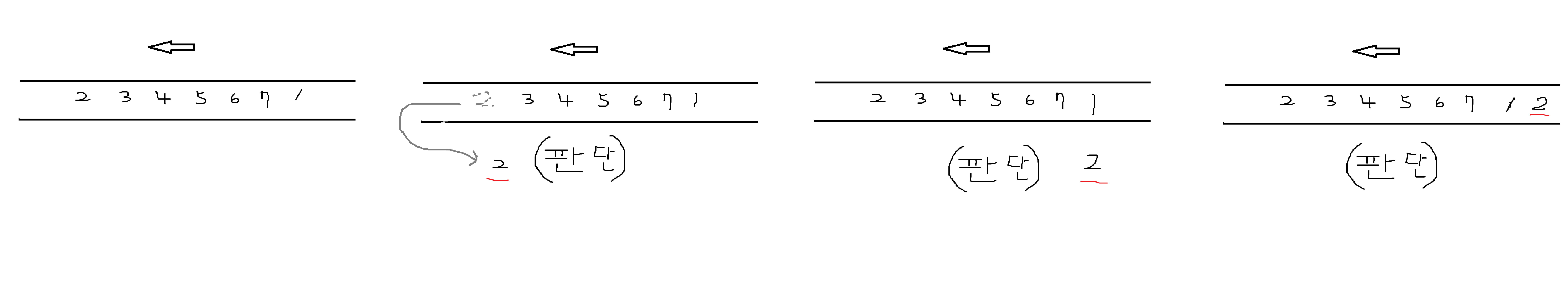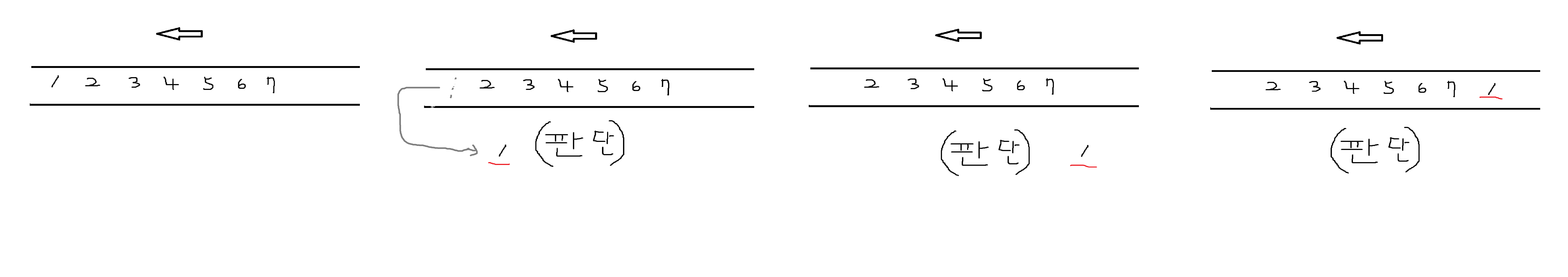 맨 앞에 있는 값인 1이 나와서 판단과정을 거친다.