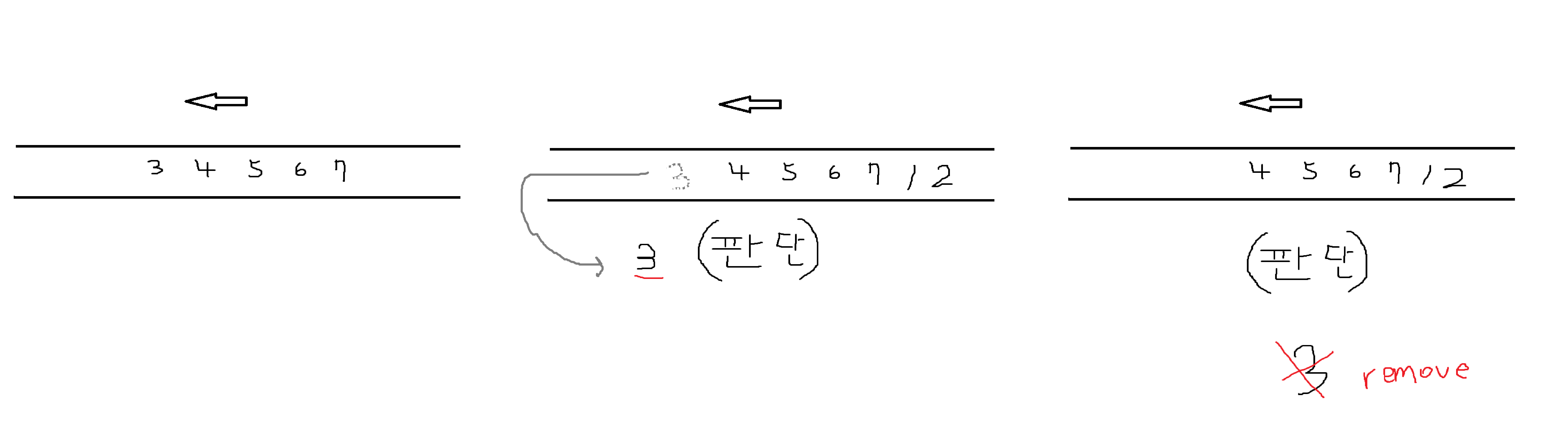 맨 앞에 있는 값(가장 먼저 들어간 값)을 빼와서 K번째 값인지 판단한다.