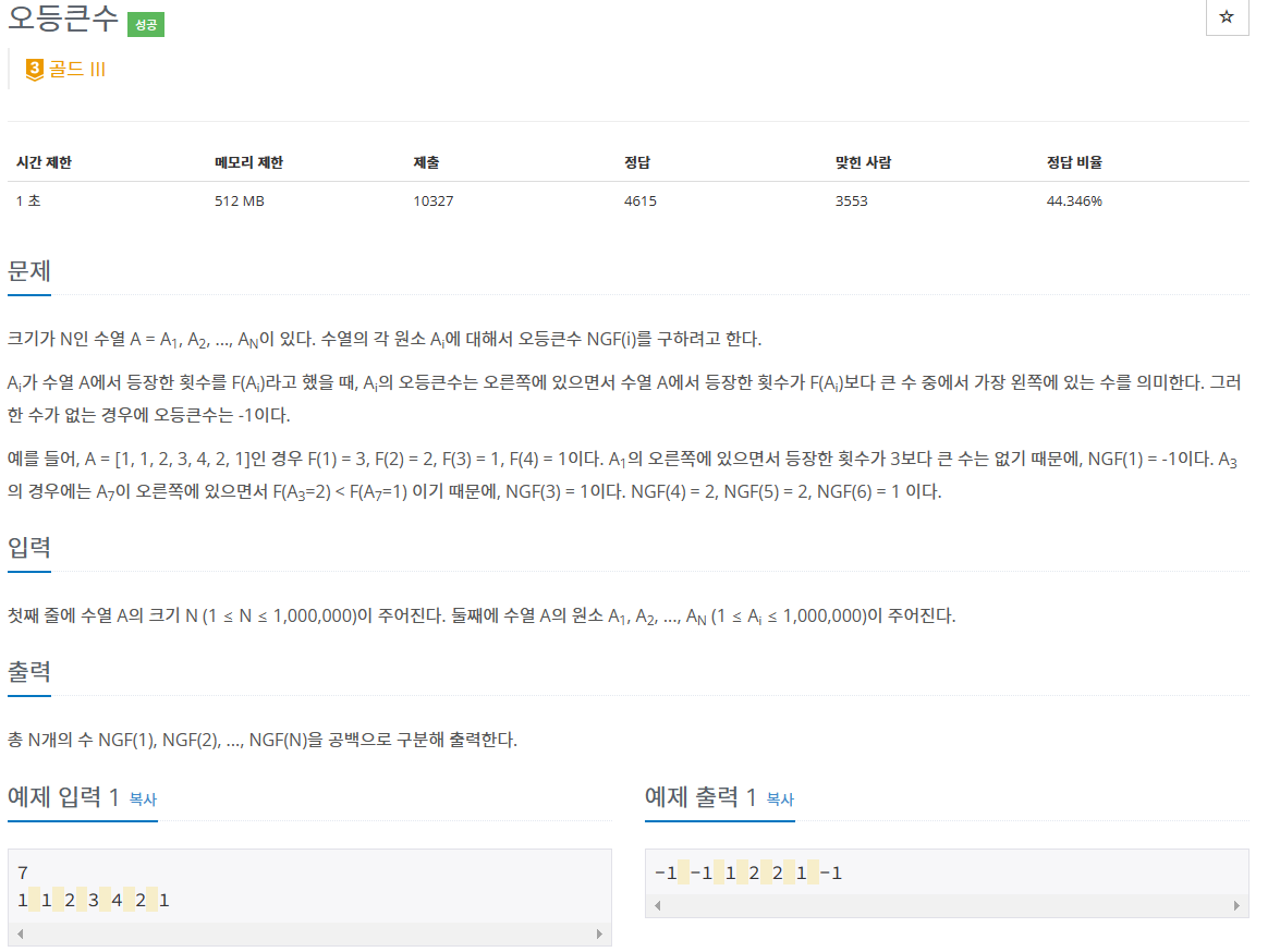 17299번: 오등큰수