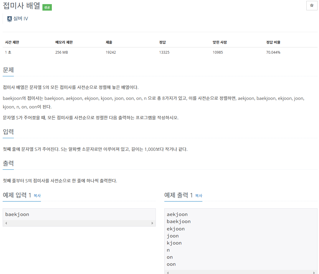 한 단어를 여러개로 쪼개고 사전순으로 정렬