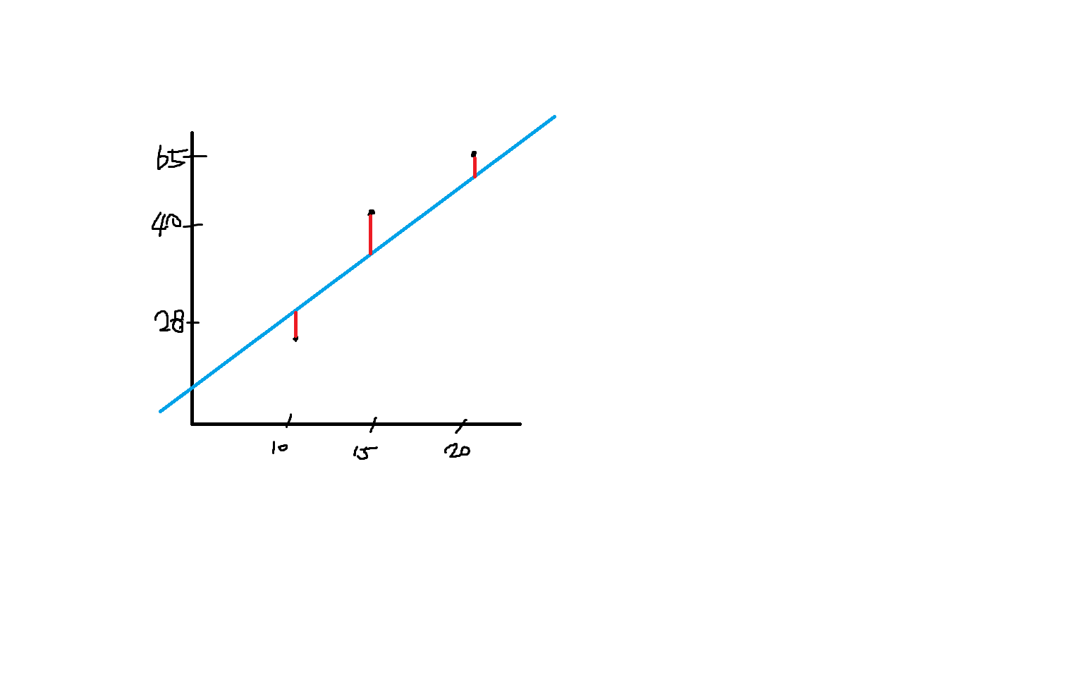 이 거리들이 가장 최소가 되는 선을 찾는다
